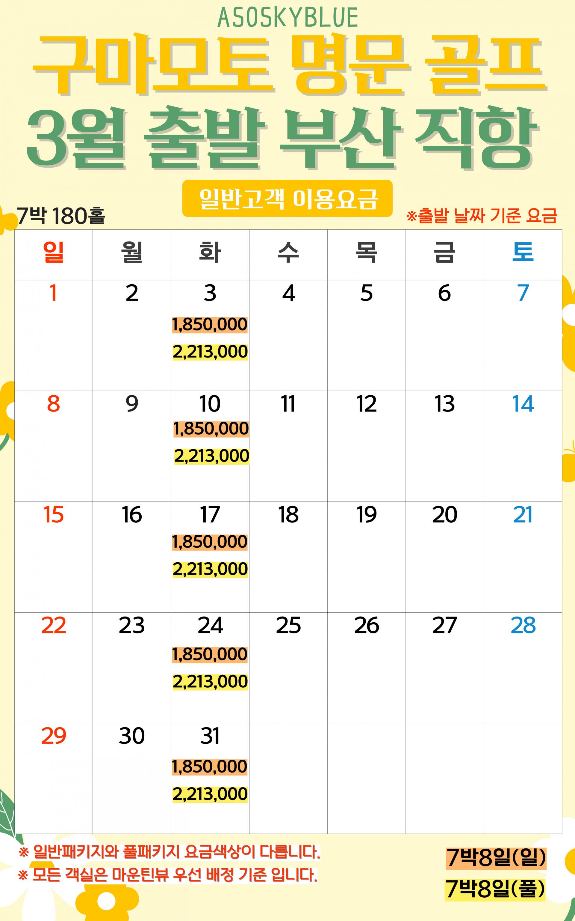 ·출발날짜 토요일(3박4일), 화요일(4박5일)