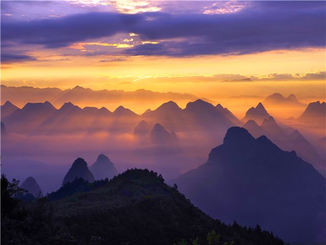 계림 시내가 한눈에 보이고 가지각색의 산봉우리등 계림의 절경을 한눈에 즐길 수 있다.