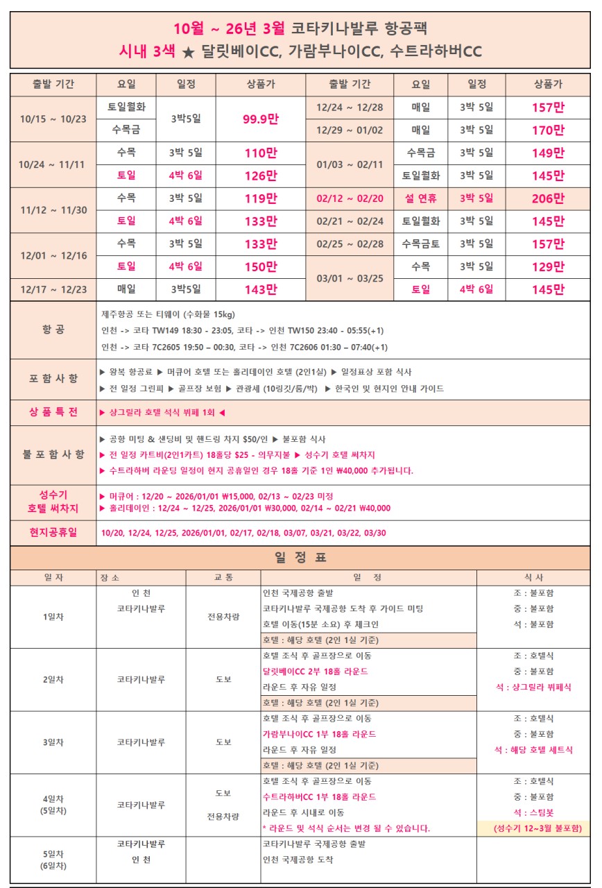 - 소요시간 : 공항에서 15분, 수트라CC 10분, 가람부나이CC 40분, 달릿베이CC 40분