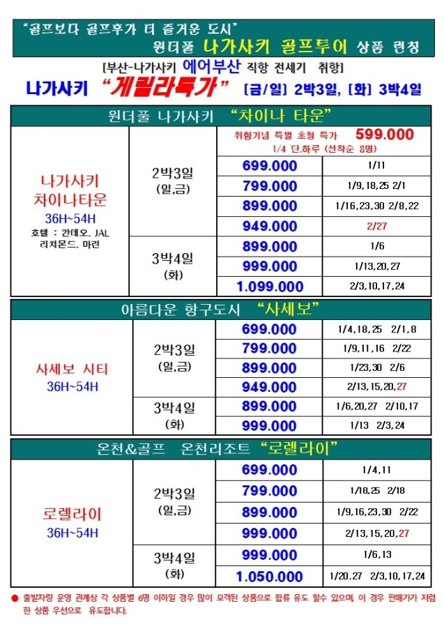 ✅️ 매주 금요일, 일요일 출발 = 2박3일 / 화요일출발 [3박4일]