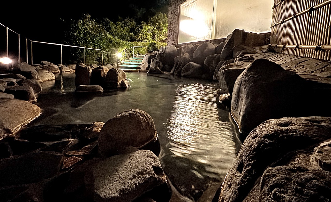 노천탕 : 돌로 조성된 노천탕에서 숲과 하늘을 마주하며 즐기는 완벽한 온천 경험
