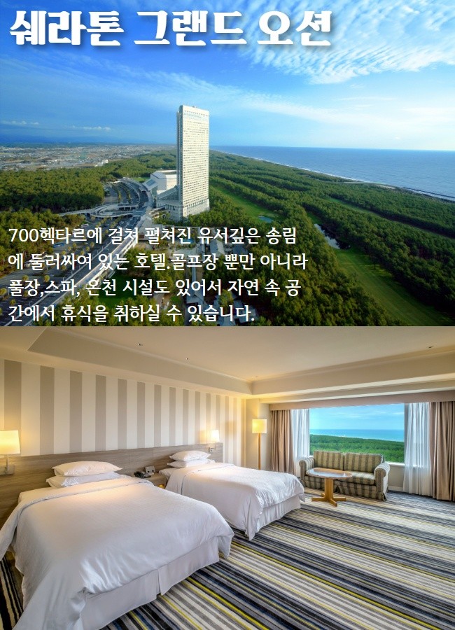 미야자키 국제공항 도착. 송영 차량을 이용하여 골프장으로 이동 (약 20분소요) ⛳️아오시마 G.C 9홀 카트+셀프 플레이 (14:30 이후티옵 / 일몰까지) *도착 후 플레이 일 경우 욕실 이용이 불가능하며, 락커 이용시 1인당 440엔 별도 현장결제 하셔야합니다 . 락커 사용하지 않아도 탈의실이 있어 옷을 갈 아 입으실 수 있습니다 .* 라운딩 후 호텔로 이동 (약 50분 소요) 호텔 체크인 후 호텔 석식 및 온천욕 ✳️ 피닉스 시가이아 오션타워(구.쉐라톤) 또는 동급 [2인1실] |