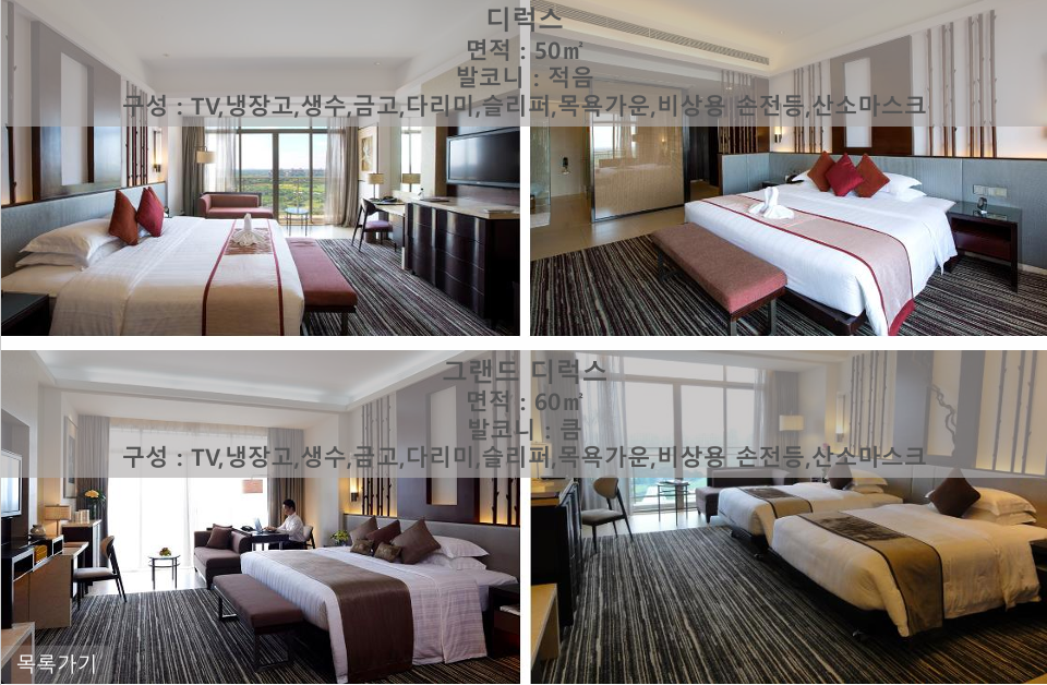 ·포함내역 | 왕복항공권, 리조트 숙박(프리미어룸), 일정상 식사, 그린피+카트+캐디피, 미팅샌딩비, 여행자보험 ★ 1번, 5번코스 포함 ★ |