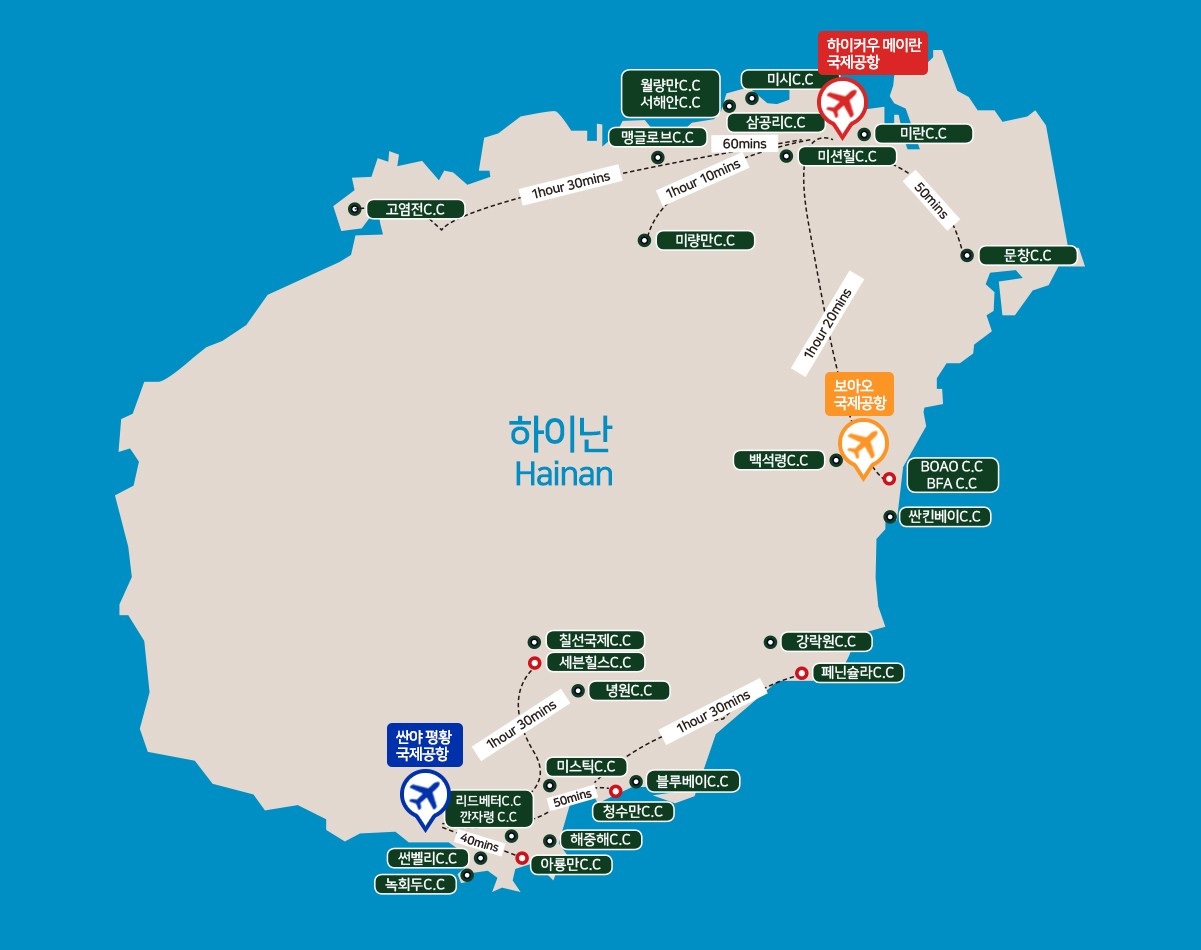 산야 국제공항 도착 입국 수속 후 가이드 미팅 & 호텔로 이동 (약 60분 소요) 호텔 체크인 및 호텔 투숙 ✳️ 라마다 온천리조트 또는 동급[2인1실] [꼭~ 확인 해 주세요!] - 의무 라운드 + 의무 클럽식 상품으로 라운드 불참시에도 [전동카트+클럽식] 비용은 지불 하셔야 합니다. ※ 비골퍼 또는 라운드 미참여시에도 전동카트+클럽식 비용은 지불하셔야 합니다. - 하이난 지역은 면비자 또는 무비자로 진행되며, 예약시 정확한 APIS사항 및 여권사본 전달 해 주시면됩니다. (입출국 작성 必) - 무비자 진행은 일반여권(PM)에 한하여 가능하며, 관용여권 및 외국인 여권인 경우 담당자에게 별도 문의 바랍니다. |
