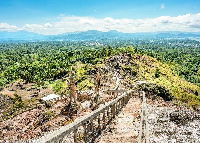 부킷 카시는 미나하사 고지대 카논앙 마을에 위치한 ‘사랑의 언덕’으로, 마나하사 원주민 조상인 토르(Toar)와 루미무트(Lumimuut)의 얼굴이 바위에 새겨진 독특한 조형물과 다섯 종교의 예배당이 공존하는 평화와 조화의 상징 공간입니다. 화산 지열로 온천과 유황 연기가 피어오르며, 약 2,000개의 계단을 올라 53m 높이의 십자가 기념탑까지 오를 수 있습니다. 이곳은 다문화적 관용과 종교 간 공존의 의미를 직접 체험할 수 있는 뜻깊은 관광지입니다. |