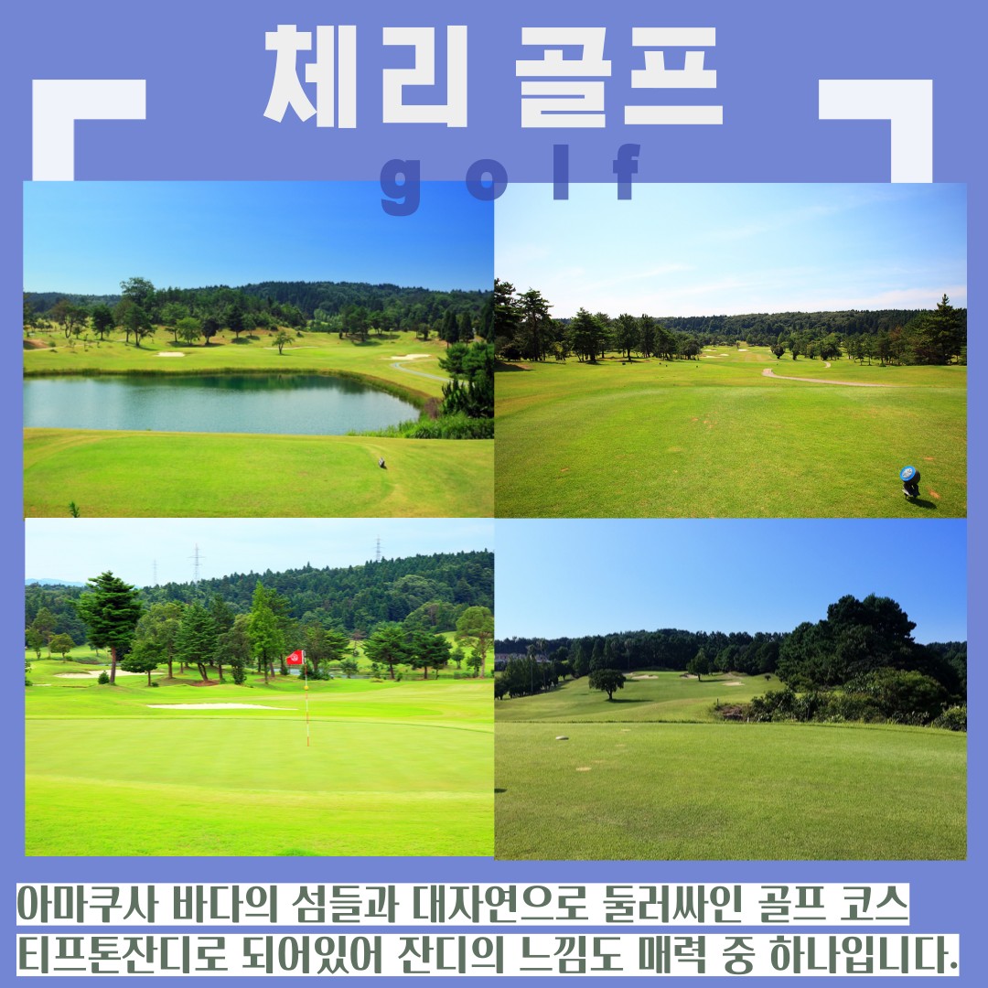 체리 골프 클럽코스는 아마쿠사 바다의 섬들과 대자연에 둘러싸여 세련된 아름다움을 보여줍니다.