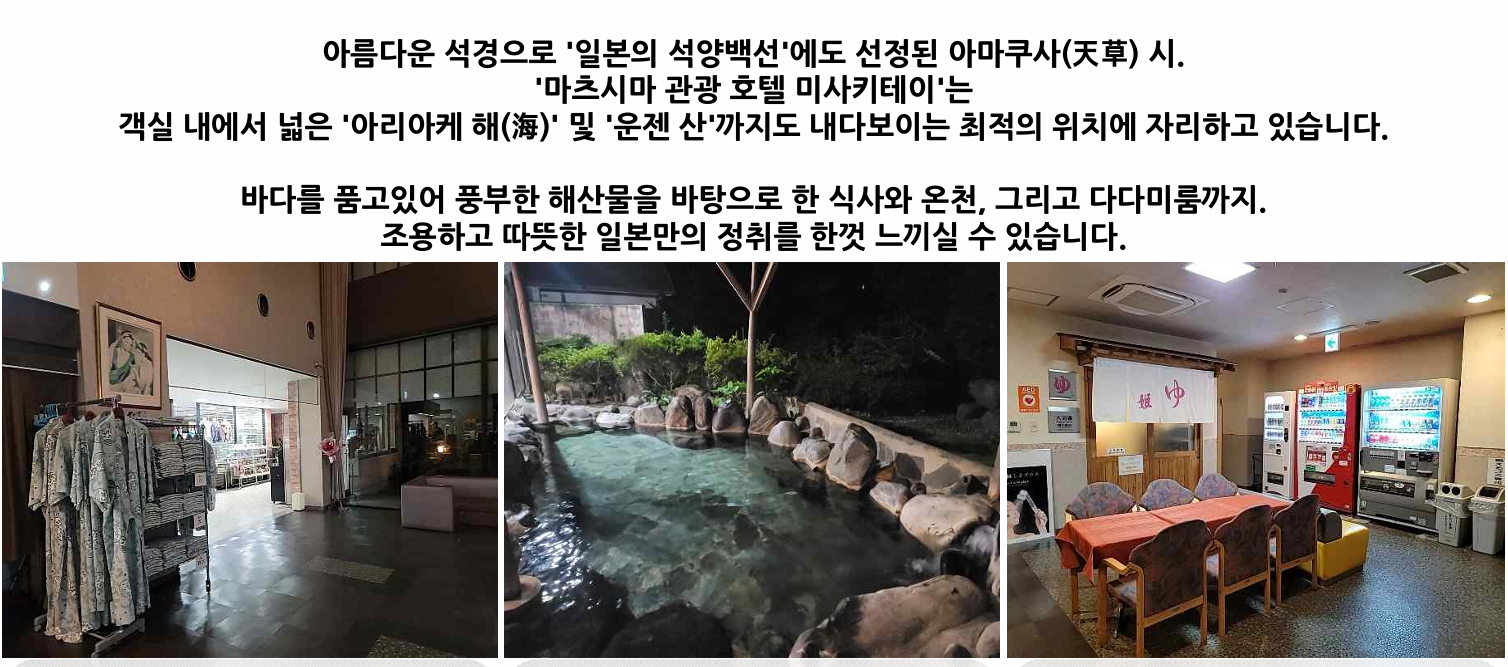 | ·항공편 | 티웨이항공 인천 07:50 출발 → 구마모토 09:25 도착 구마모토 10:30 출발 → 인천 12:25 도착 |